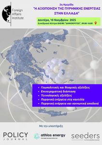 Ημερίδα με θέμα την «Αξιοποίηση της Πυρηνικής Ενέργειας στην Ελλάδα» διοργανώνει για δεύτερη φορά το Ινστιτούτο Εξωτερικών Υποθέσεων, την Δευτέρα, 10 Νοεμβρίου 2025, στο Συνεδριακό
